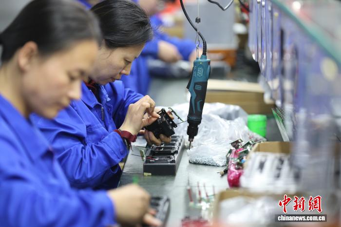 2月28日,位于山东省日照市东港区的山东比特智能科技股分无限公司消费车间,工人正正在追造旅店用德律风机战插座出心定单。图/CNSphoto 郑培波 摄